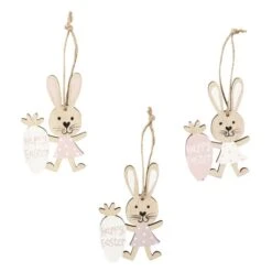 Dekohänger – Hase – Happy Easter – Aus Holz – Ca. 8 X 5 Cm – 3 Stück