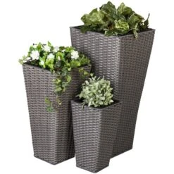 Hängepflanzkorb – Grau/braun – Aus Kunststoffrattan – Ca. 22 X 14 X 14/29 Cm