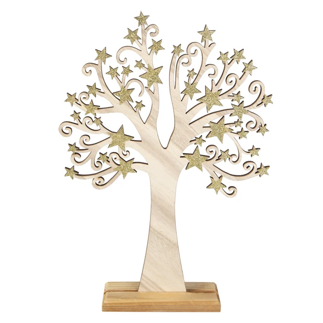 Dekobaum – aus Holz – ca. 24,5 x 5 x 34,5 cm – braun/gold