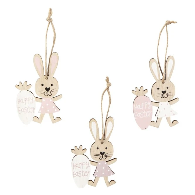 Dekohänger – Hase – Happy Easter – aus Holz – ca. 8 x 5 cm – 3 Stück