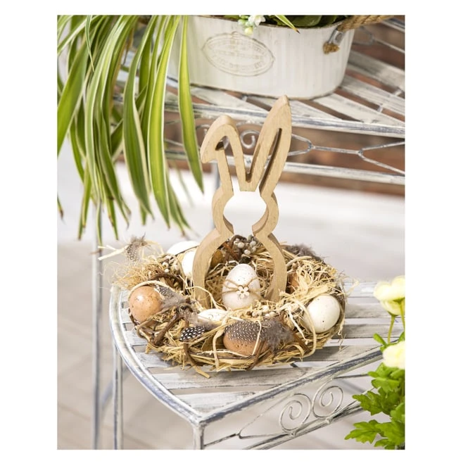 Sie gehören auch zu denjenigen, die das Frühjahr mithilfe geschmackvoller Dekoration willkommen heißen und mühelos österliche Akzente in den vier Wänden setzen möchten? Dann werden Sie dieses Stück lieben! Der niedliche Dekohase taucht das Zuhause im Nu in ein heiteres Frühlingsambiente und bringt Sie und Ihre Lieben ganz sicher gehörig zum Strahlen. Dieser ist nämlich nicht nur ein echter Augenschmaus, sondern überdies auch genau das Richtige, um der Fantasie beim Schmücken freien Lauf zu lassen. Er besteht aus Holz, misst 12 x 2,5 x 26 cm und ist vor allem aufgrund des liebevoll gestalteten Eis ein dekoratives Highlight, an welchem Sie sich ganz sicher nicht sattsehen. Ganz gleich, ob alleine präsentiert oder in Kombination mit weiteren österlichen Elementen in Szene gesetzt – mit der hinreißenden Hasensilhouette bleiben fortan keinerlei Dekowünsche mehr offen.