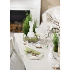 Der Winter ist vorüber, die Knospen sprießen und der Osterhase steht schon unmittelbar vor der Tür. Wenn Sie diesen stilecht begrüßen und den wärmeren Jahreszeiten Haus und Hof öffnen möchten, werden Sie dieses Kerlchen lieben! Der niedliche Dekohase ist genau das Richtige, um das Osterfest dekorativ einzuläuten und grenzenlosen Dekospaß zu erleben. Dieser ist nämlich ein echter Augenschmaus, welcher sich dank dem neutralen Weiß nahtlos in jeden Raum einfügt. Er besteht aus Keramik, ist in zwei verschiedenen Größen erhältlich und das ideale Zubehör, um der Fantasie beim österlichen Schmücken freien Lauf zu lassen. Also schnappen Sie sich das hinreißende Osterhäschen und legen Sie gleich los!