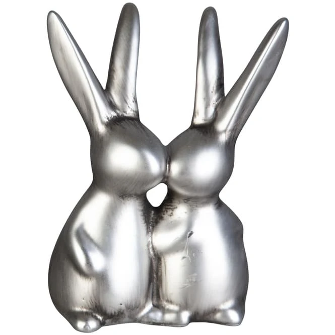 Sie stehen für Fruchtbarkeit und sind neben kunterbunten Eiern das absolute Frühlingssymbol: Hasen. Gerade zu dieser Zeit haben unsere Tiere mit den langen Löffeln wieder Hochkonjunktur und das muss natürlich stilecht gefeiert werden. All diejenigen, die auf der Suche nach einem echten Prachtexemplar sind, mit dem sie die Fantasie beim frühjährlichen Schmücken frei walten lassen können, kommen mit den niedlichen Dekohasen vollends auf ihre Kosten! Diese sind nämlich echte Blickfänger, die sich hervorragend als stilvoller Osterbote eignen. Das Element besteht aus Dolomit, misst 8 x 5 x 11 cm und setzt mithilfe des zeitlosen Silbers jederzeit glamouröse Akzente in den vier Wänden. Ganz gleich, ob alleine präsentiert oder in Kombination mit weiteren österlichen Elementen in Szene gesetzt – mit den hinreißenden Hasen ist grenzenloser Dekospaß garantiert!