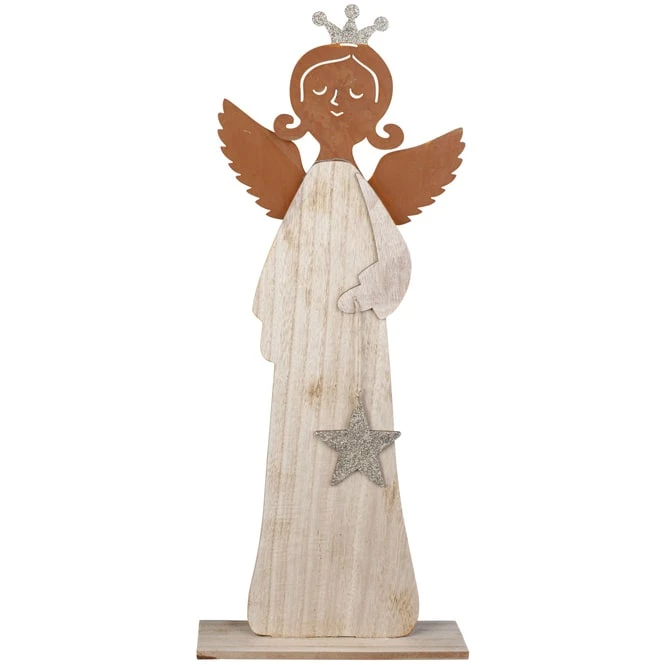 Das Weihnachtsfest steht vor der Tür und zu diesem Anlass ist eine stimmungsvolle Dekoration natürlich unerlässlich. Ganz gleich, ob Rentiere, Tannenbäume oder Engel – diese Themen sind einfach überall vertreten und dürfen in keinem geschmückten Zuhause fehlen. Wenn Sie also auf der Suche nach einer modernen Neuinterpretation dieser Klassiker sind, werden Sie den niedlichen Engel lieben! Dieser fügt sich dank dem dezenten Braun nahtlos in jeden Raum ein und verbreitet so in Sekundenschnelle ein winterliches Ambiente. Er ist 28 x 7,5 x 64,5 cm groß und vor allem aufgrund harmonischen Kombination aus neutralem Holz und rostigem Metall ein echter Augenschmaus. Aus diesem Grund eignet sich der hinreißende Dekoengel ideal, um der Fantasie beim adventlichen Schmücken freien Lauf zu lassen und grenzenlosen Dekospaß zu erleben. Also schnappen Sie ihn sich und legen Sie gleich los!