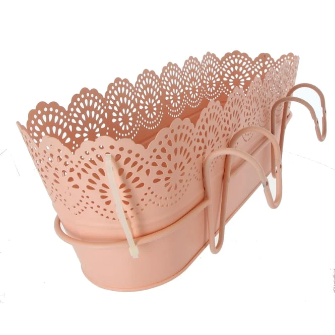 Hängepflanztopf mit Spitze – aprikot – aus Metall – ca. 50 x 15 x 18 cm
