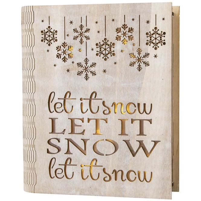 All diejenigen, die es mögen, ihre vier Wände saisonal herzurichten, um die festliche Zeit in Heim, Herz und Gemüt zu lassen, werden das hinreißende LED-Buch lieben! Dieses ist dank seiner detailreichen Gestaltung nicht nur ein echter Augenschmaus, sondern sorgt darüber hinaus auch für eine Extraportion Behaglichkeit. Es besteht aus Holz, verfügt über die Maße 20,5 x 5 x 24 cm und leuchtet in Kombination mit 2x AAA Batterien (nicht im Lieferumfang enthalten) warmweiß auf. Mithilfe seiner natürlichen Farben fügt sich das niedliche Dekobuch nahtlos in jeden Raum ein und ist somit genau das Richtige, um sich beim adventlichen Schmücken munter auszutoben. Ganz gleich, ob im Schlafzimmer, Wohn- oder Esszimmer – mit dem tollen Buch bleiben fortan keinerlei Wünsche mehr offen.