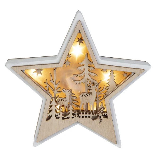 LED-Stern – aus Holz – ca. 14,5 x 2,5 x 14,5 cm
