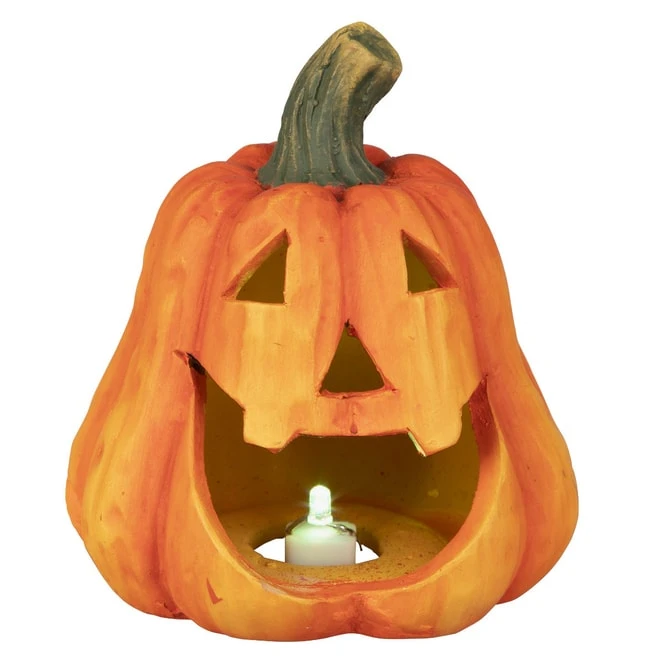 LED-Windlicht – Kürbis – aus Terrakotta – ca. 13,5 x 13,5 x 13,5 cm