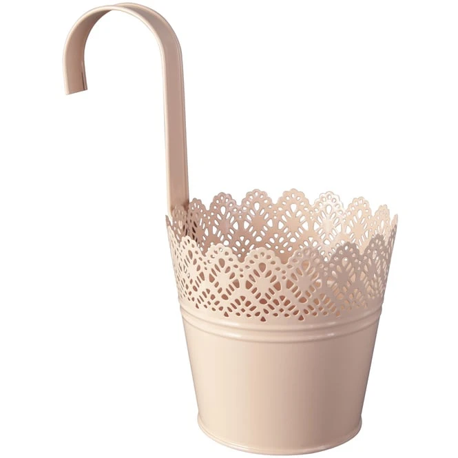 Mit dem niedlichen Pflanztopf können sich HobbygĂ€rtnerinnen und -gĂ€rtner munter austoben und sich die zarten Farben des FrĂŒhlings mĂŒhelos in die vier WĂ€nde holen! Dieser ist nĂ€mlich ein echter Augenschmaus, von dem dank der liebevollen Gestaltung kein Trendsetter genug bekommt. Er besteht aus Metall, misst 14 x 10 x 12,5 cm und ist in verschiedenen pastelligen Tönen erhĂ€ltlich. Daneben besticht der tolle Blumentopf insbesondere durch den edlen Spitzenrand, welcher ihn zu einem dekorativen Highlight macht, wĂ€hrend er sich dank des Hakens kinderleicht an Balkon, Zaun und Co. anbringen lĂ€sst. Aus diesem Grund ist er genau das Richtige, um sich beim frĂŒhjĂ€hrlichen SchmĂŒcken munter auszutoben und grenzenlosen GartenspaĂ zu erleben. Also schnappt euch den hinreiĂenden Ăbertopf und lasst die Fantasie frei walten!