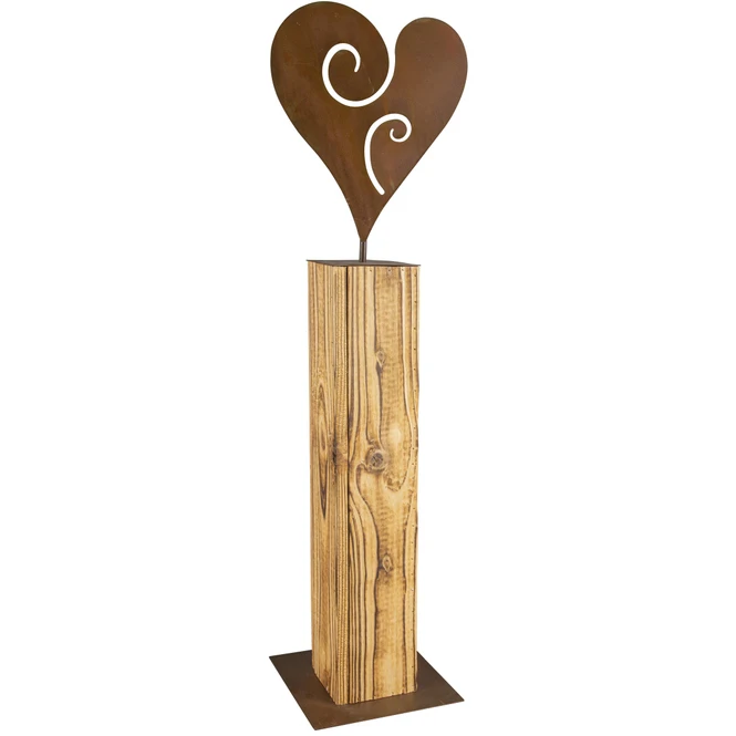 Sie sind eines der klassischen Themen in der Dekoration und dürfen daher in keinem hübsch hergerichteten Zuhause fehlen: die Rede ist von Herzen. All diejenigen, die auf der Suche nach einem besonderen Stück sind, das nicht nur den Herbst auf herzliche Weise willkommen heißt, sondern die vier Wände darüber hinaus in eine behagliche Wohlfühlatmosphäre taucht, werden die hinreißende Standdeko lieben! Diese kommt in Form eines Holzblockes daher, welcher insgesamt ca. 21 x 18 x 77 cm misst und vor allem dank dem liebevoll gestalteten Herz sowie dessen angesagter Rostoptik ein dekoratives Highlight ist. Durch die harmonische Farbgestaltung eignet sich das Element auch hervorragend für alle diejenigen, die Wert auf eine dezentere Dekoration legen, die Modernität jedoch nicht vernachlässigen möchten. Also schnappen Sie sich dieses Goldstück und schmücken Sie munter drauflos!