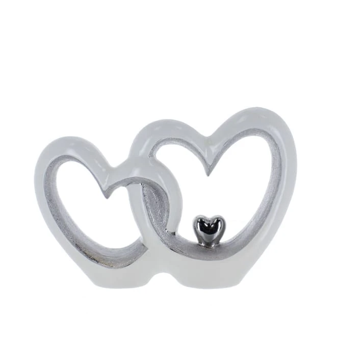 Standdeko – Herzsilhouette – weiß/siber – aus Keramik – ca. 33 x 9 x 22,5 cm