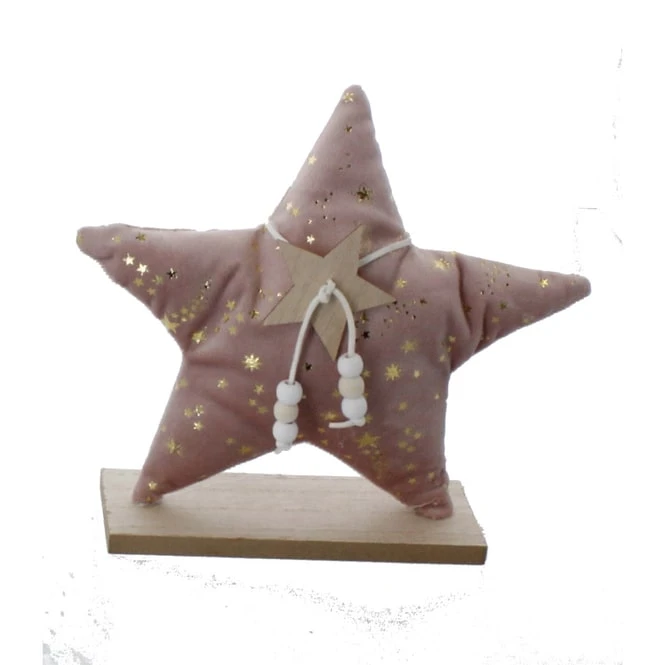 Stern rosa/gold/braun – aus Textil und Holz – 20,5x6x20,5 cm