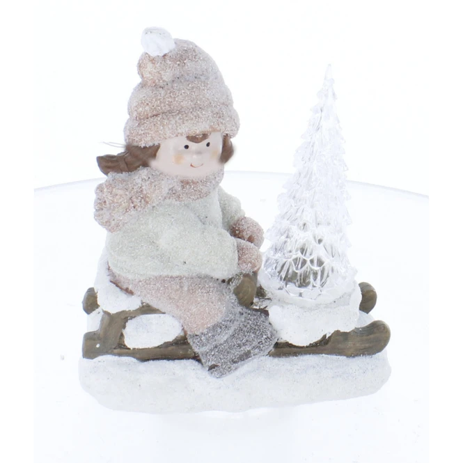Winterkind mit LED Baum – ca. 16,5 x 10,5 x 20 cm – 1 Stück